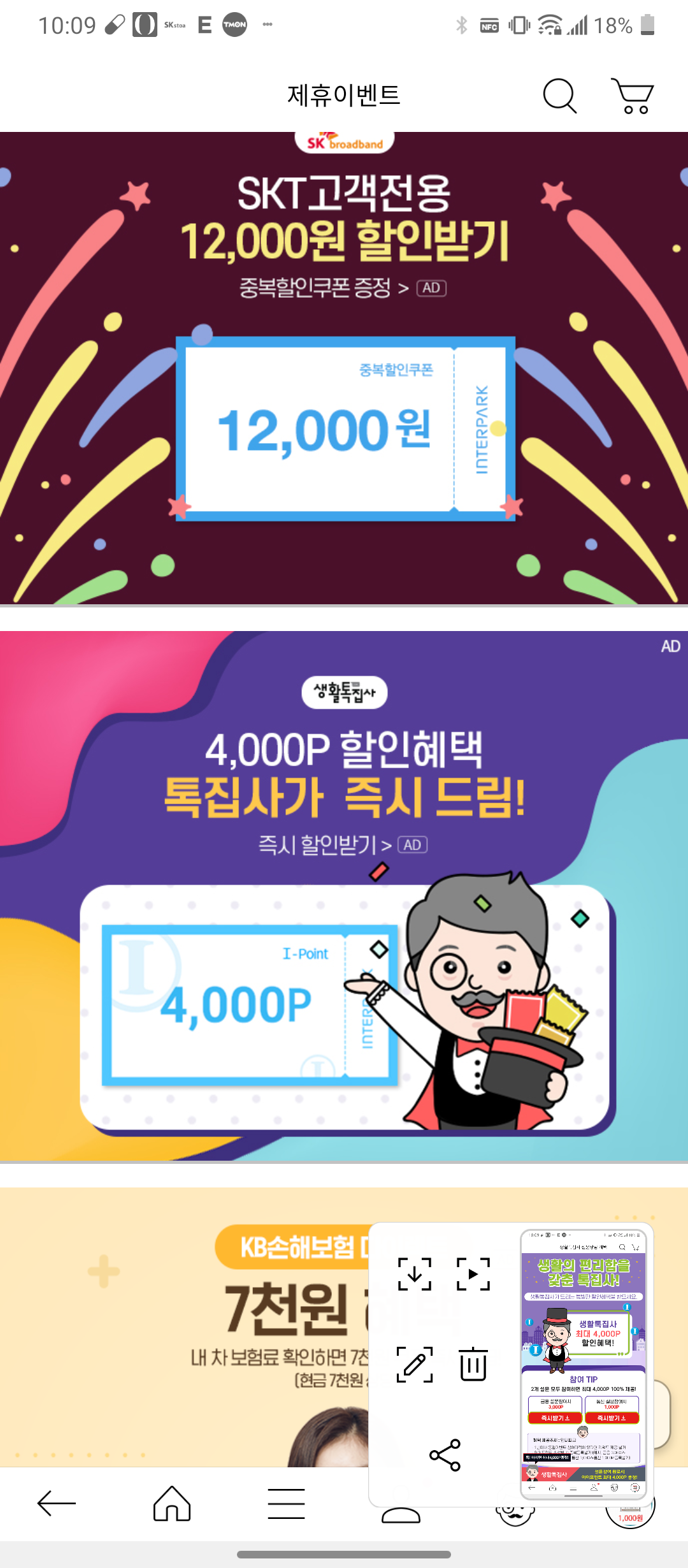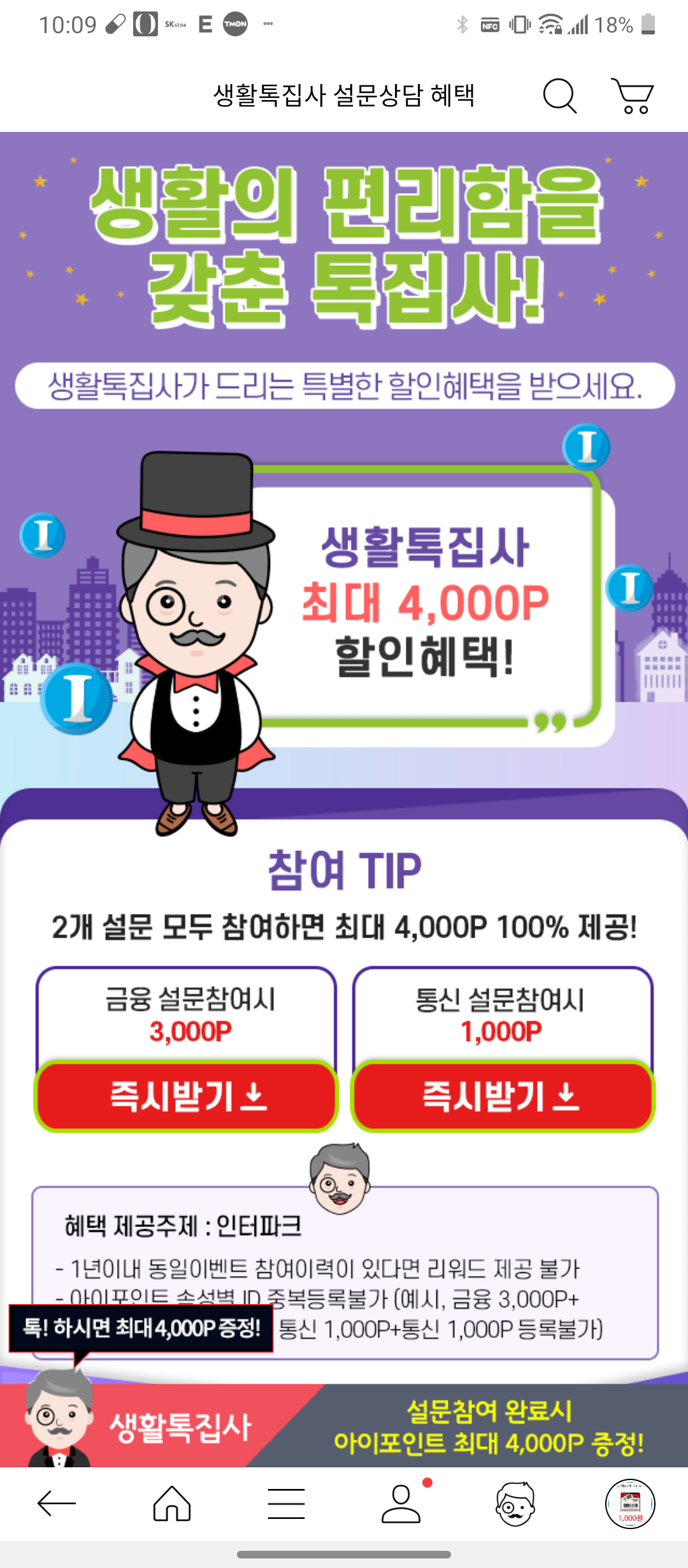 바로 저기 톡집사 4,000p 할인혜택 톡집사가 즉시드림 에 들어가서 설문조사하면 아이포인트 준다고함. 그래서 신나게 설문조사하고 ~ 내일 포인트 들어오면 컬쳐 구입해야지~