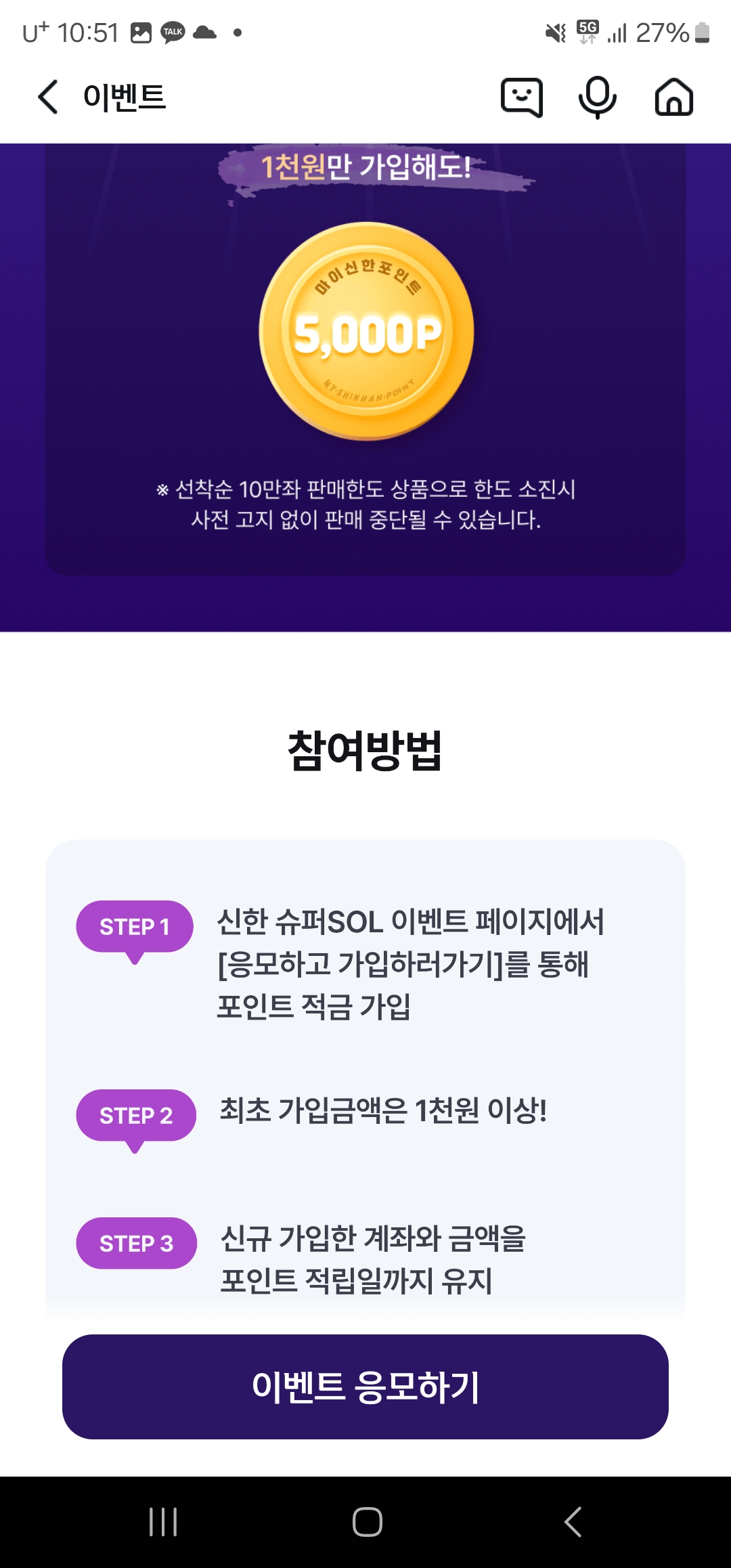 1천원으로 5천포인트 받으세요. 신청방법도 참 간단해요.